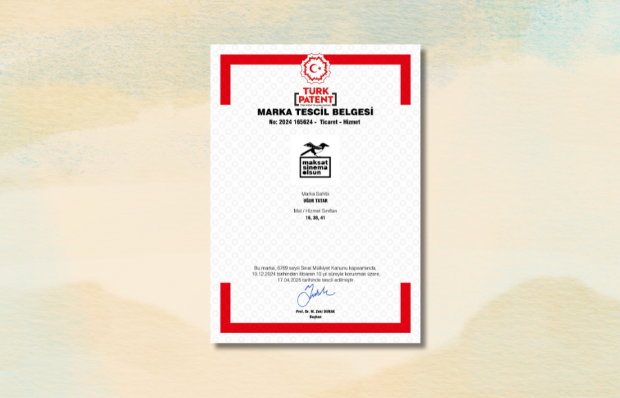 17 Nisan 2025 tarihinde ise bir başka hayalimi gerçekleştirdim ve “Maksat Sinema Olsun”u Türk Patent ve Marka Kurumu’na başvurarak tescil ettirdim. Anlayacağınız “Maksat Sinema Olsun” artık tescilli bir marka.